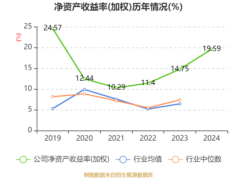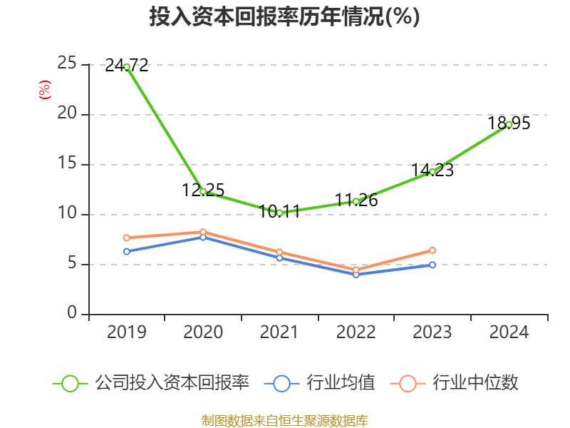 数据显示,2024年公司加权平均净资产收益率为19.59%,较上年同期上升4.84个百分点。公司2024年投入资本回报率为18.95%,较上年同期上升4.72个百分点。