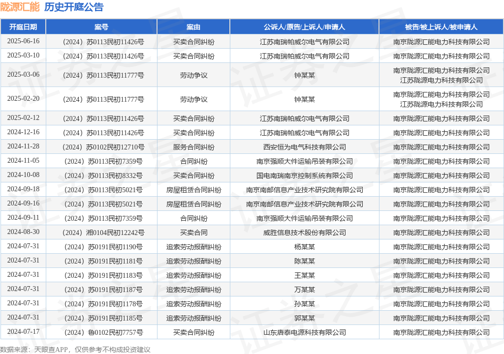 本站消息,根据天眼查APP显示,近日公布了一则南京陇源汇能电力科技有限公司作为被告/被上诉人的开庭公告在线配资门户,详细内容如下: